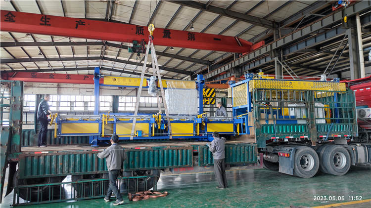 5月5日,湖北黄石定制的四台设备(12米大型彩钢夹芯板码垛机,净化板码垛机,CZ型钢码垛机,岩棉自动上料机)全部顺利交付。